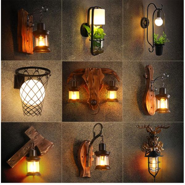 Industrial Loft design creative cafe restaurant bar bedside iron wooden led wall lamp (WH-VR-21) Images |